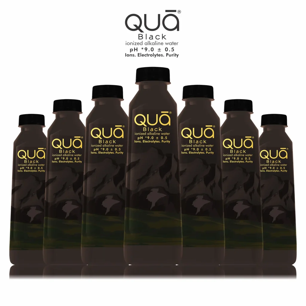 Qua Ionized Alkaline Water: Pure Himalayan water enriched with minerals for optimal hydration and balance